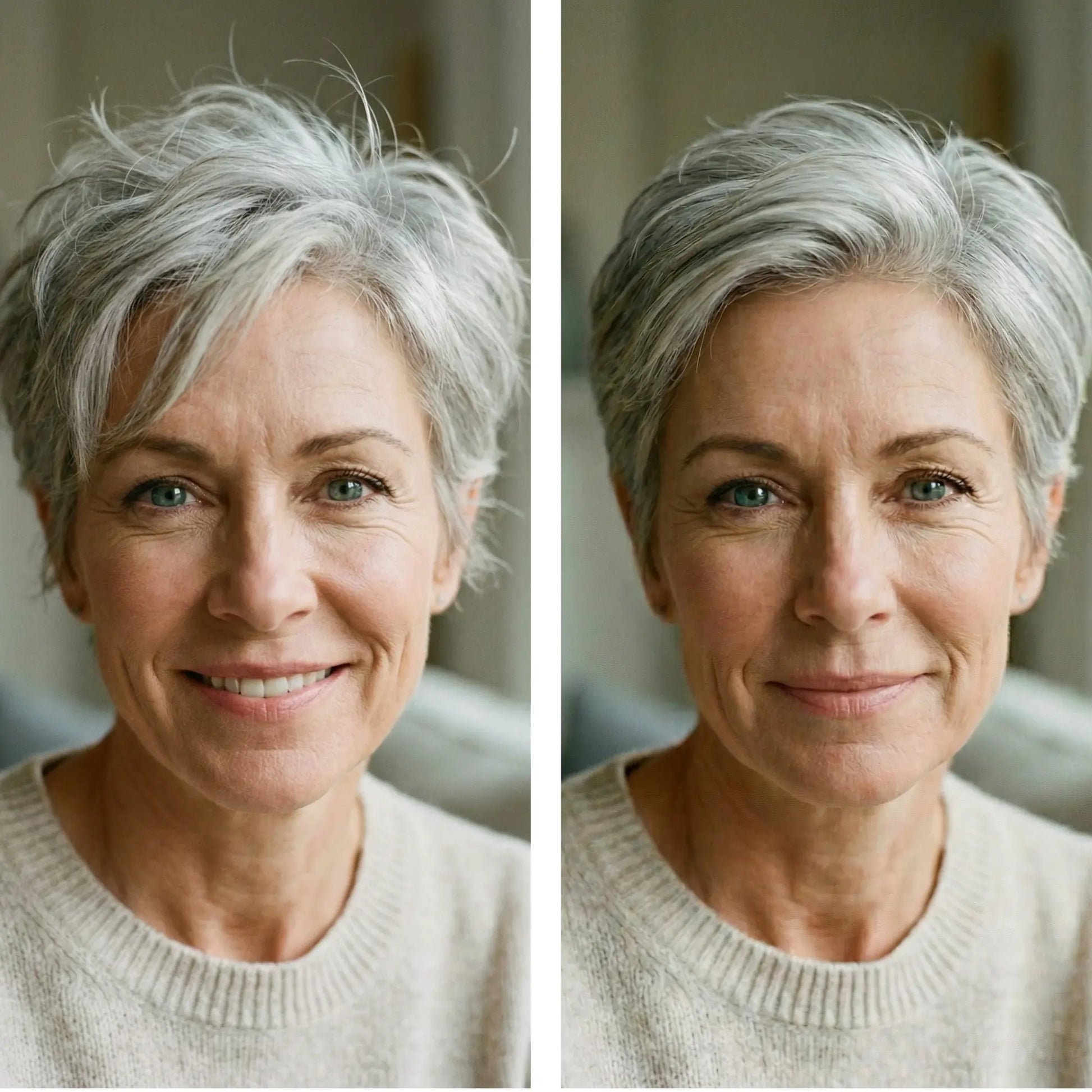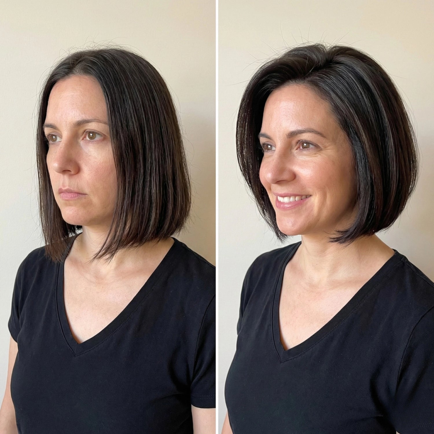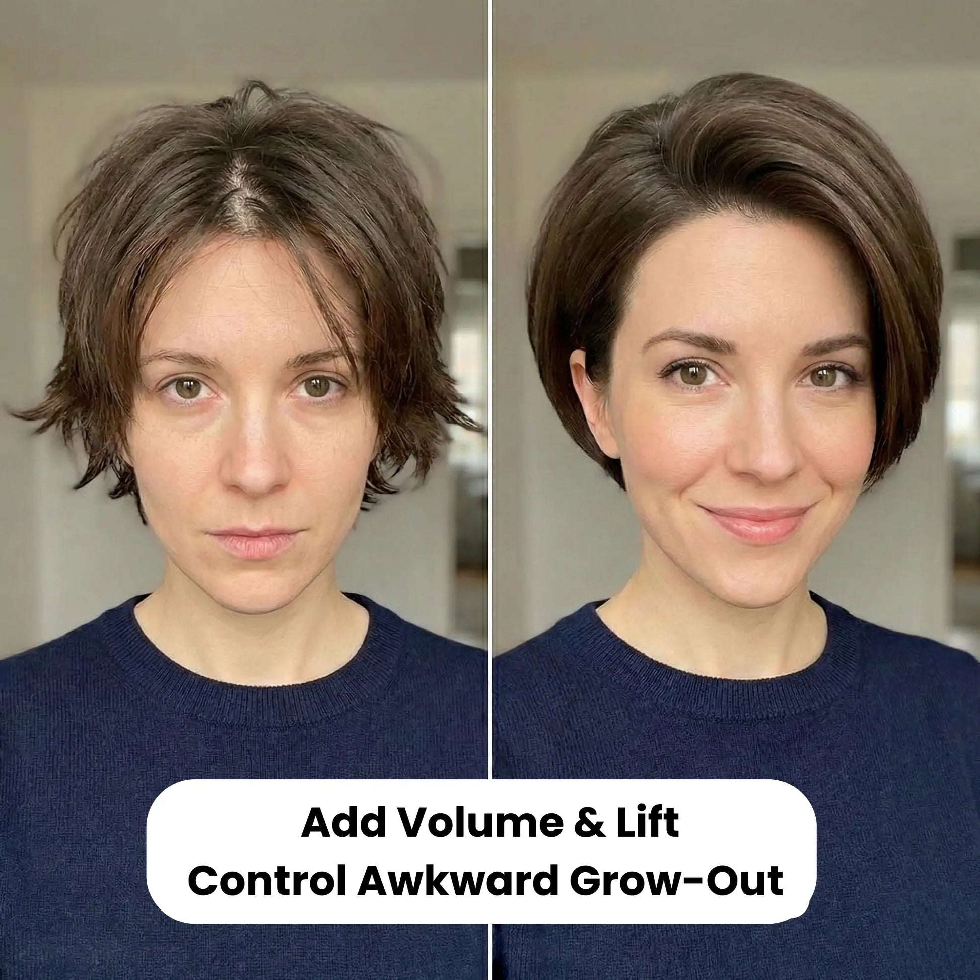 When short hair grows out, it often poofs at the sides while staying flat on top—creating an unflattering triangle shape.